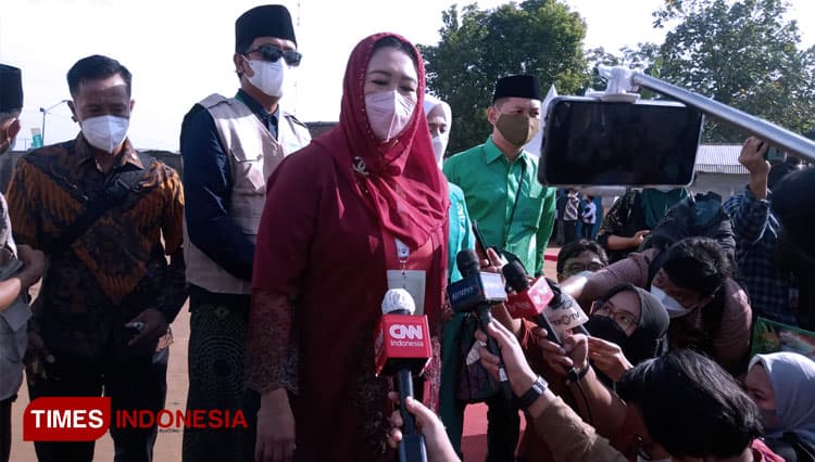 TIMES Toraja/Putri Abdurrahman Wahid (Gus Dur) Yeny Wahid saat diwawancarai oleh awak media. (FOTO: Moh Ramli/TIMES Indonesia)
