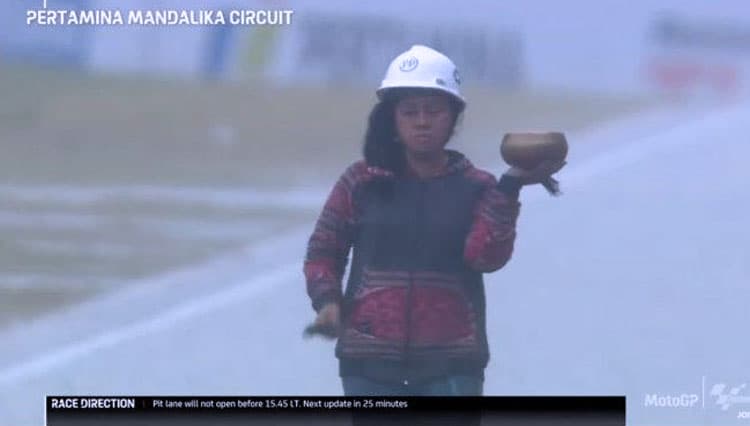 TIMES Toraja/Raden Rara Isti Wulandari, sang pawang hujan saat Sirkuit Mandalika, Lombok Tengah, NTB, Minggu (20/3/2022) (FOTO: t-2.tstatic.net)