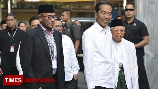 TIMES Toraja/Presiden terpilih, Jokowi, saat tiba di Gedung KPU RI, Minggu (30/06/2019). (FOTO: Hasbullah/TIMES Indonesia).